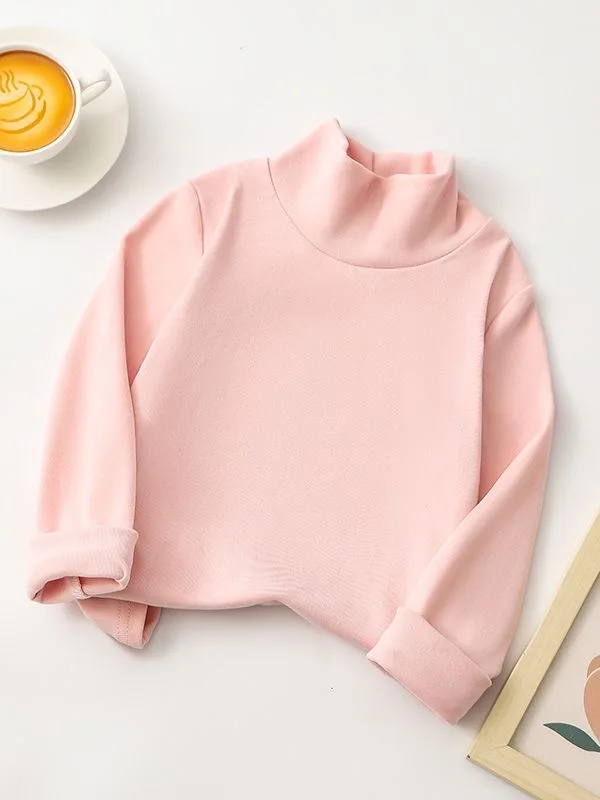 1pcs Children T-Shirt Cute Cartoon Solid Top Baby Korean Clothing Kids Half High Collar Long Sleeve Base Shirt Girls Boys Tshirt