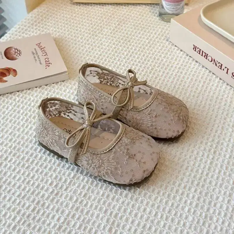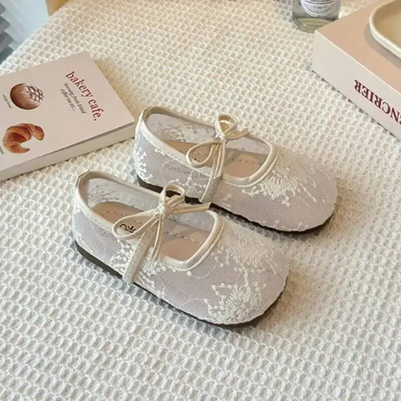 Embroidered Flowers Baby Girls Flats Shoes Bow Elastic Band Kids Princess Shoes Summer Breathable Toddler Children Ballet Flats
