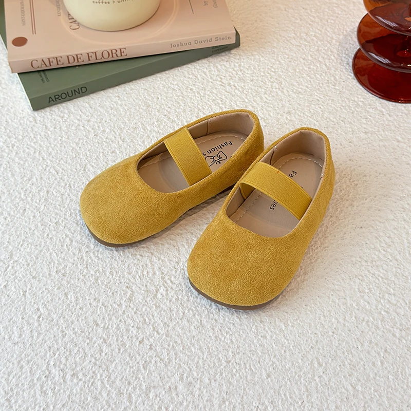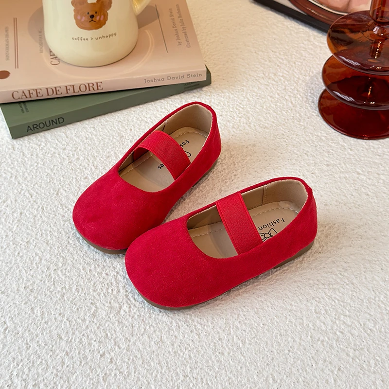 Girl’s Ballet Flats Candy Color Suede Elastic Band Kids Princess Shoes Spring Shallow Leisure Trendy Children Mary Janes 23-34