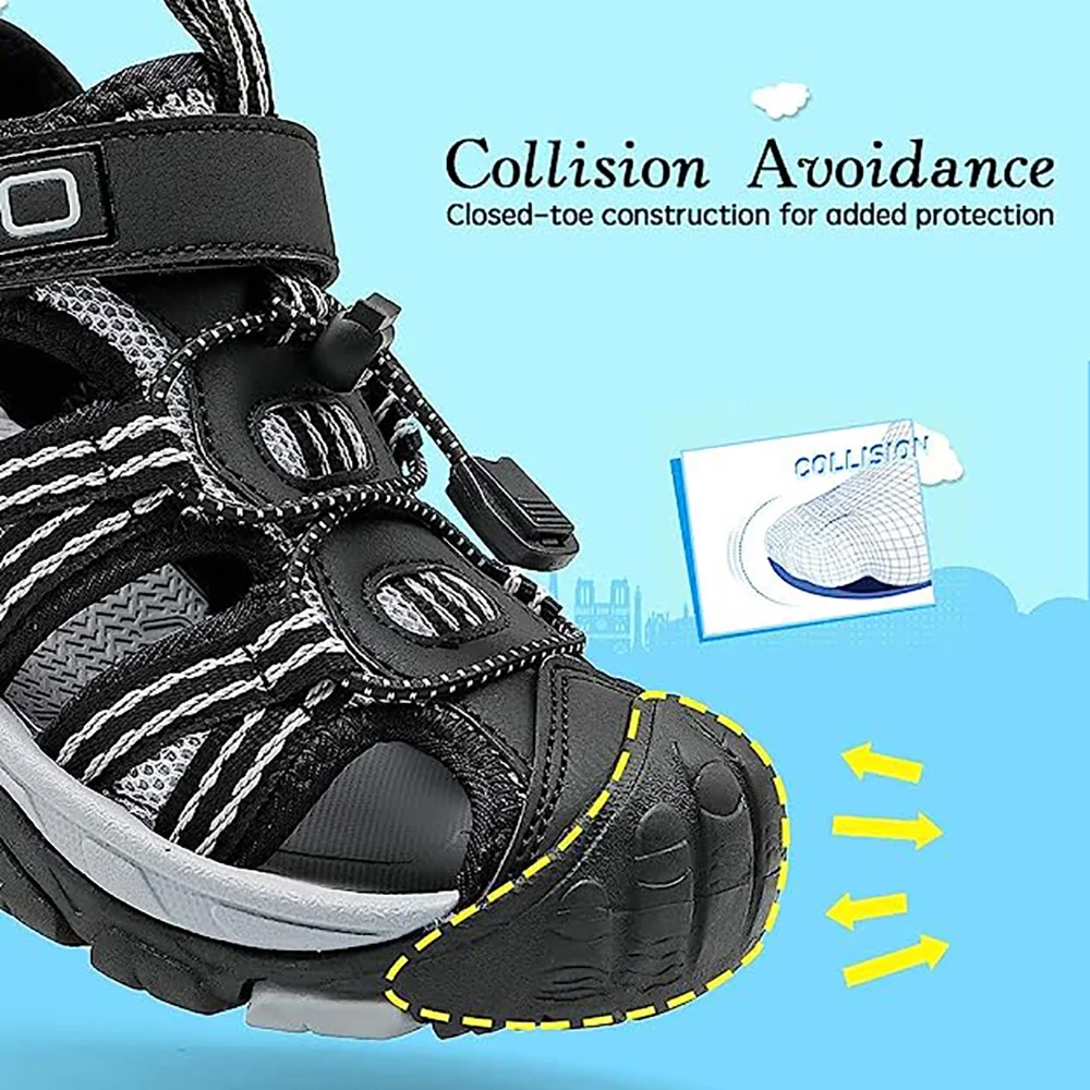 Crash-proof Toe cap: The closed toe outdoor sandals for kids protect their toes better, avoid crashing kids’ toes during sports or play.